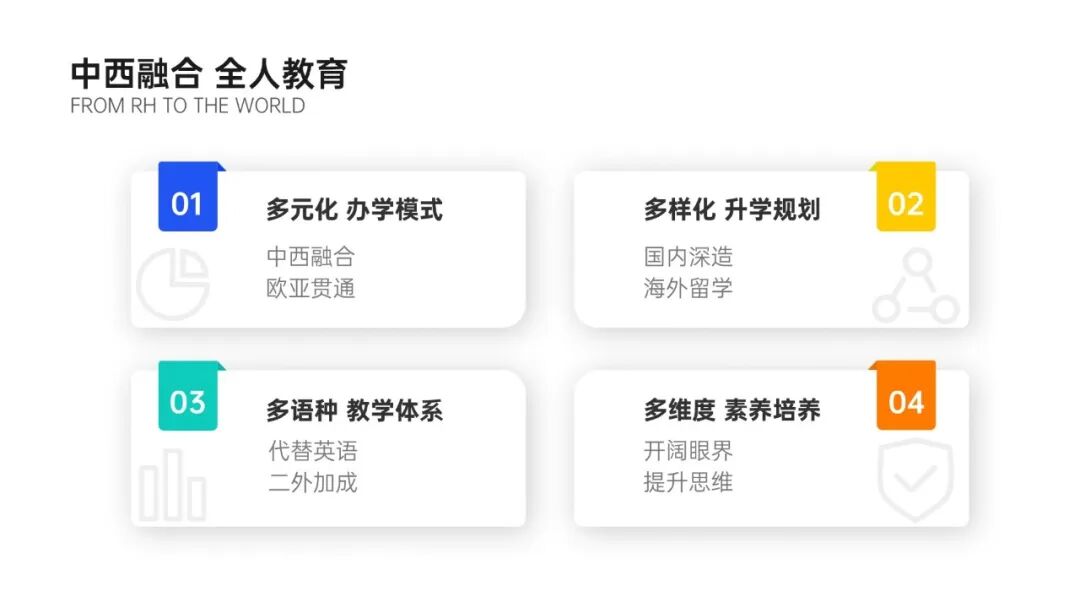 以多语种课程为中心,荣怀外语中学努力构建多元一体的国际化特色课程体系,能为学子们提供多样化的发展渠道。通过中西融合的课程设置、学科教学渗透、主题实践活动等方式,培养拥有中国情怀、国际视野、多元文化沟通能力的新型人才!
